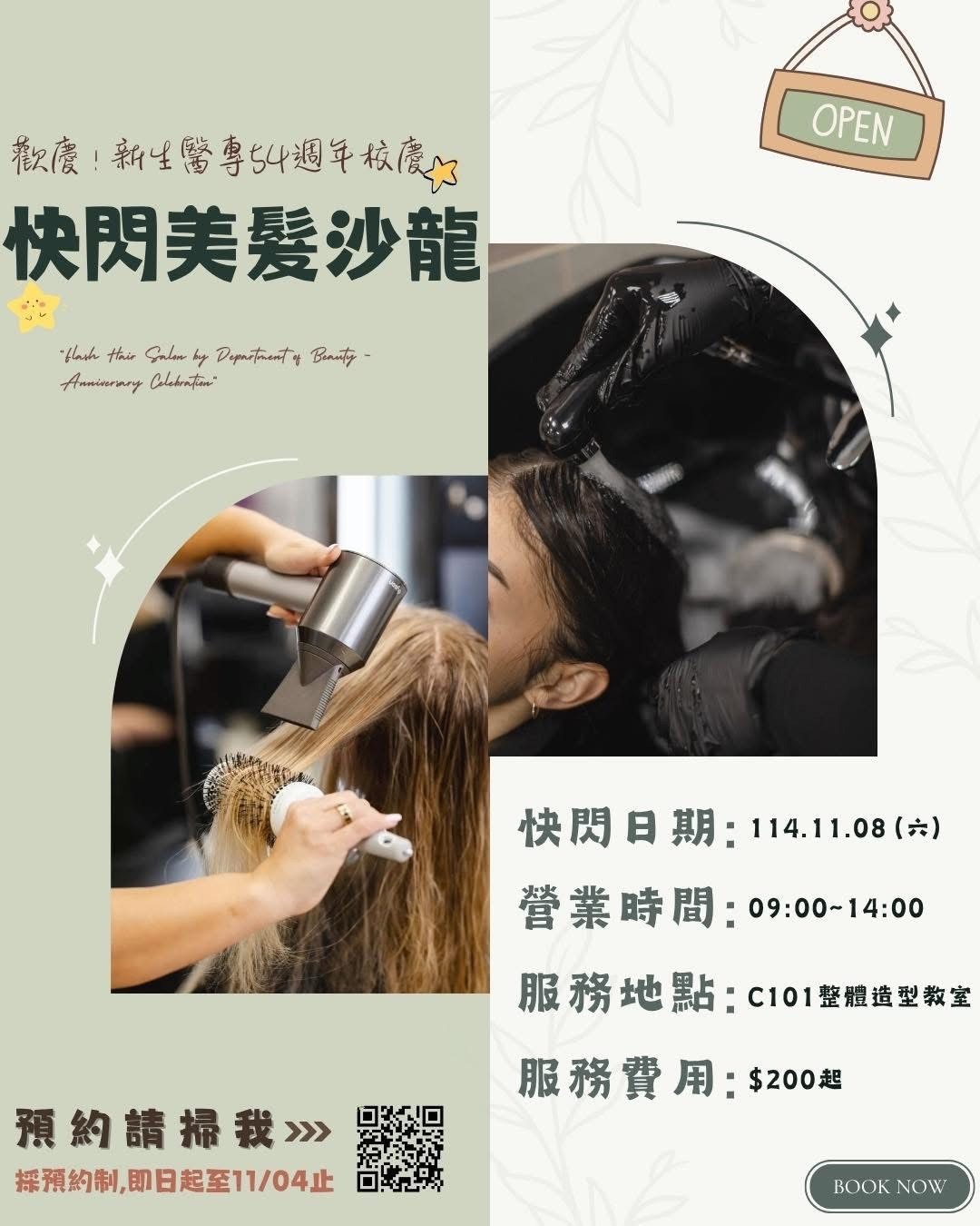 【活動預告】54週年校慶「快閃美髮沙龍」